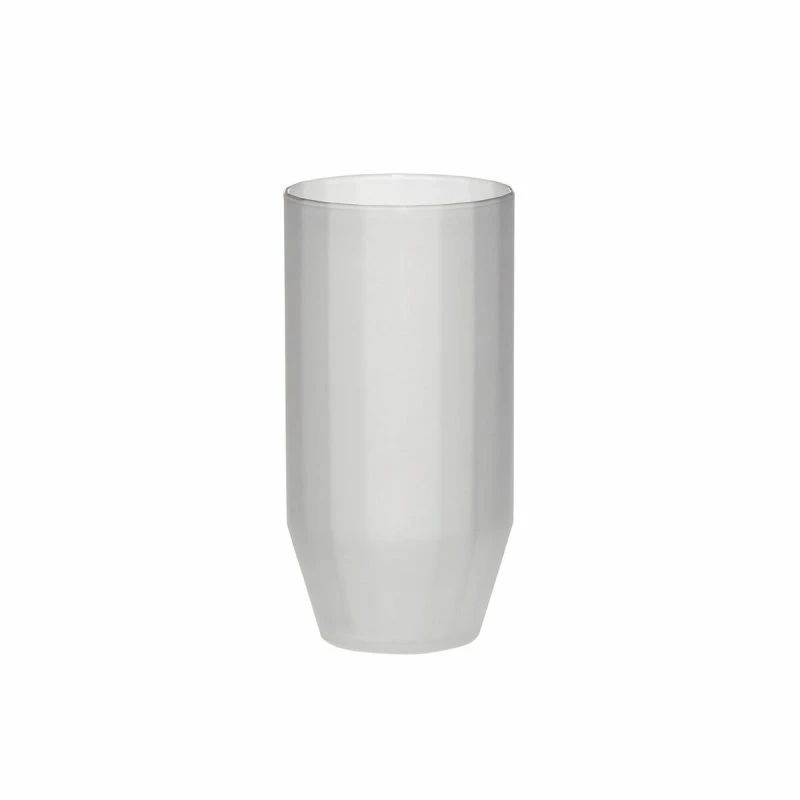 The drinking glass is designed in frosted structured glass. The stylish look is created by the elegant shaping and structure of the glass while the frosted glass creates a modern touch. This product is handmade and may therefore variate.