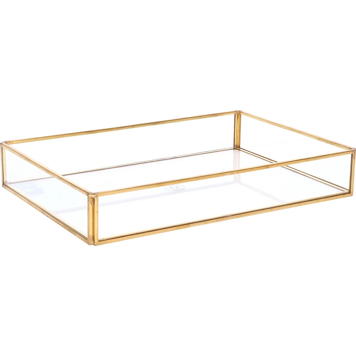 Bandeja de cristal con los bordes dorados de la marca Hübsch. Medidas: 18 x 26 x 4 cm.