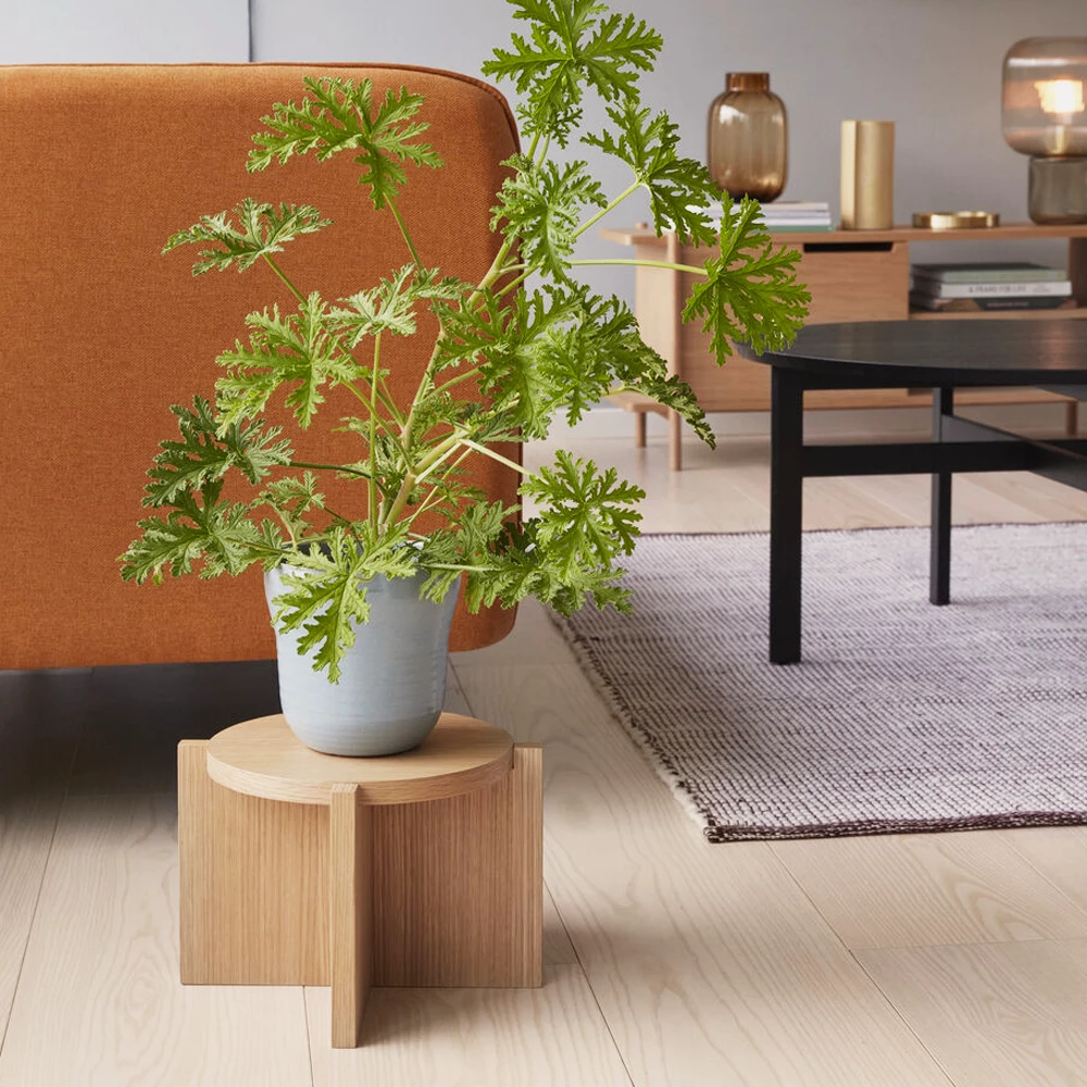 This oak plant stand is designed to raise your plants off the ground and give them the place they deserve. Made of oak wood, it is made up of a horizontal disk that serves as a support and under it two vertical planes that cross each other, which gives it great stability.