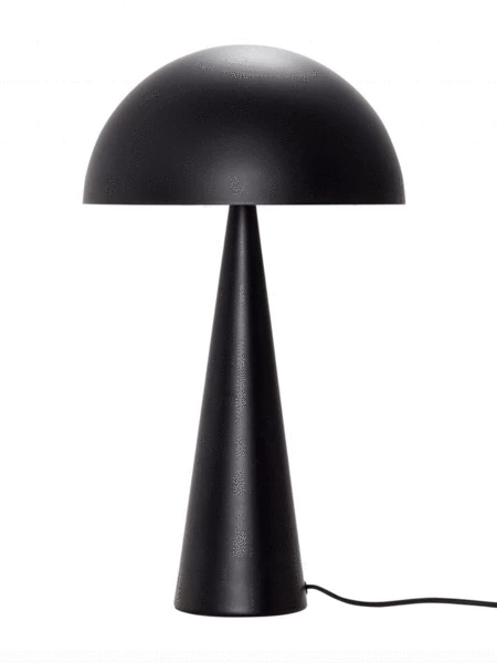 By homeware company HÜBSCH, this lamp with its domed shade and conical base, finished in a matt black or brass iron is serving mid century vibes. This one has a double bulb, to cast an even light.