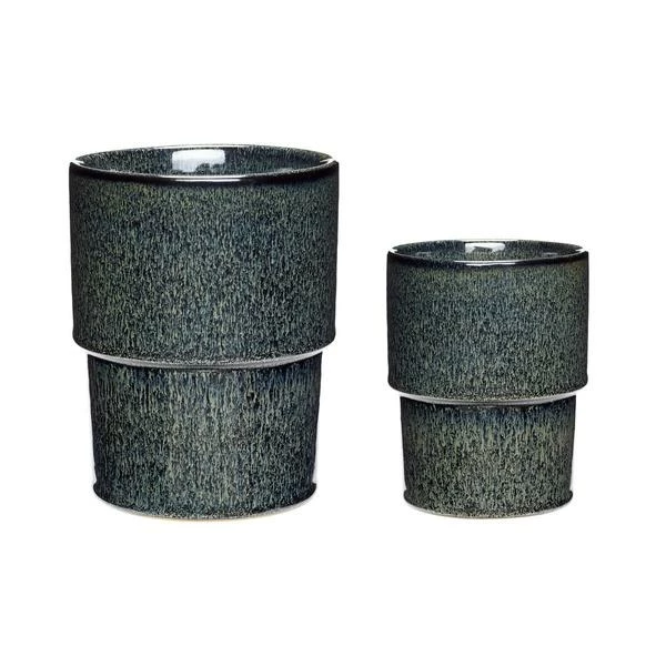 Set of 2 ceramic pots with a mottled blue and green finish. Materials: Ceramics, Stone Colors: Blue, Green Size: ø11xh14, ø12xh16cm