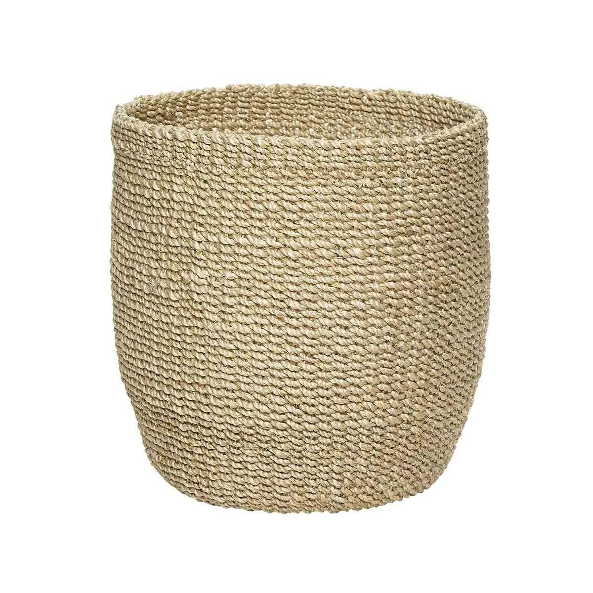 Cesto de color beige de la marca Hübsch. Medidas: 25 cm de diámetro; 28 cm de altura