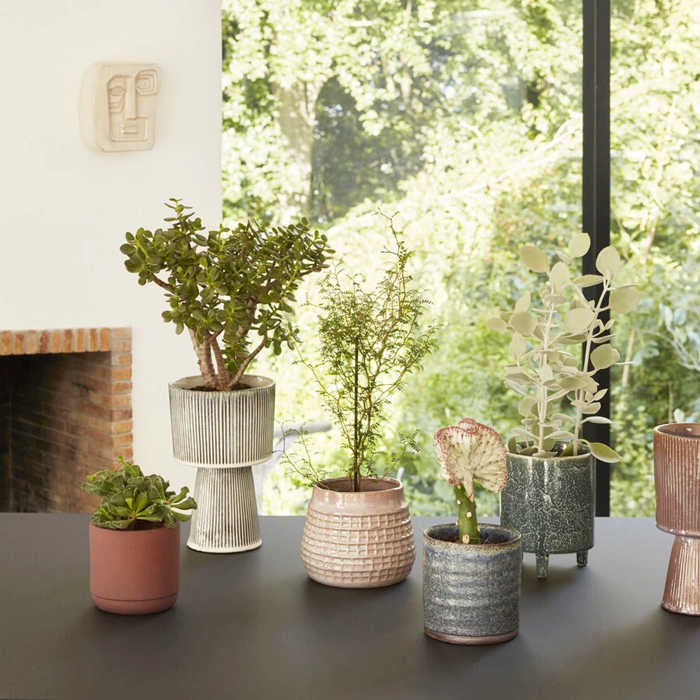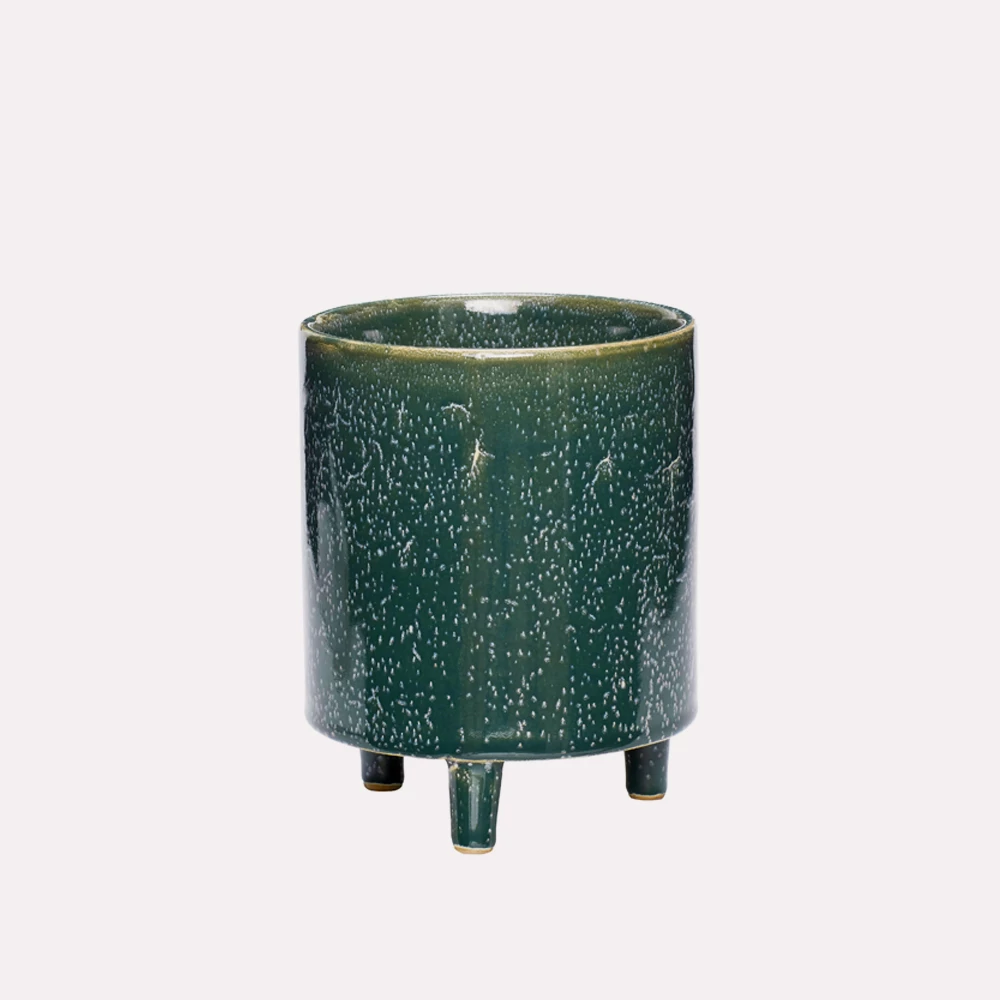 The STAND pots for plants in bottle green ceramic enhance the plants and flowers placed inside. The design is cylindrical and its characteristic legs add a special touch to the design, as does the spectacular enamel with a crackle finish. STAND is completely waterproof and has no drainage hole, a perfect pot for any type of plant.