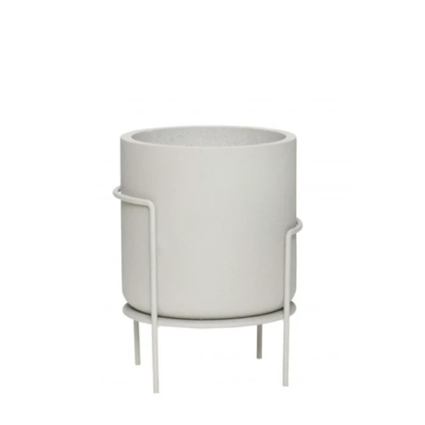 A minimalist planter from Scandinavian brand Hübsch, perfect to display your favourite house plants without distraction. – Colour: Light Grey Composition: Plaster | Metal Dimensions: Ø25cm x H35cm