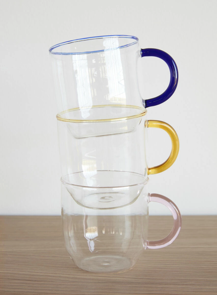 Stunning clear glass mugs with accents of colour to add personality and whimsy.