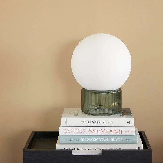 La lampe sphère Opale verte à poser, en verre de la marque scandinave Hubsch ♥ — La lampe sphère Opale à poser, couleur verte de la marque scandinave Hubsch.Cette lampe graphique au design épuré avec sa sphère posé sur son socle en verre strié. Cette lampe contemporaine avec une inspiration art déco deviendra un élément incontournable de votre décoration. Sa composition en verre opalin et en verre strié lui donnera un caractère singulier et brut. Cette jolie lampe minimaliste diffusera une jolie lumière douce. Equipée d’un câble d’alimentation de 150 cm, elle trouvera sa place aussi bien dans votre salon que dans votre chambre à coucher, mais aussi dans votre bureau. Idéale pour créer une ambiance, pour travailler ou pour la lecture. L’avis de l’Atelier Kumo : Ajouter une touche d’élégance à votre intérieur Découvrez ici les lampes de la marque Hubsch. Dimensions : diamètre : 17 cm, hauteur : 33 cm Composition : verre opalin et verre fumée Poids : 2 kg Ampoule : E 14 (non fournis) Câble : 150 cm