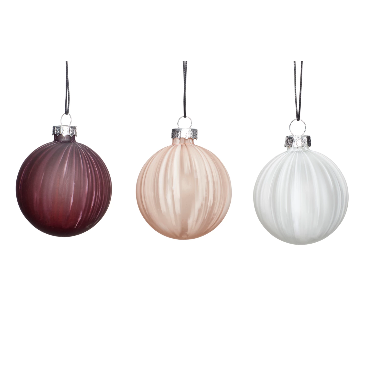 Add colours to your Christmas decorations using these set of three glass baubles in white, beige and wine red. Coming in set of three, all 8cm diameter, these Christmas decorating balls can be used over the times and will never go out of fashion.