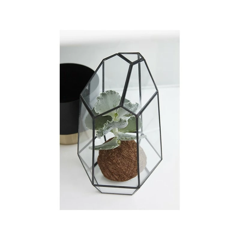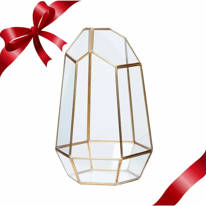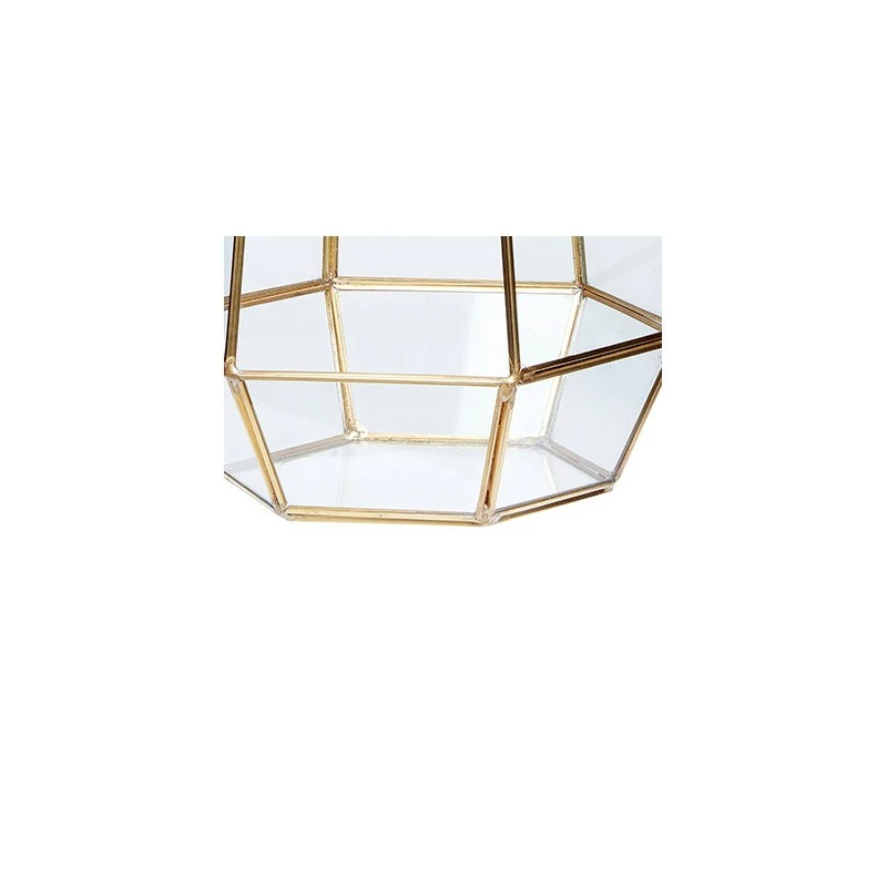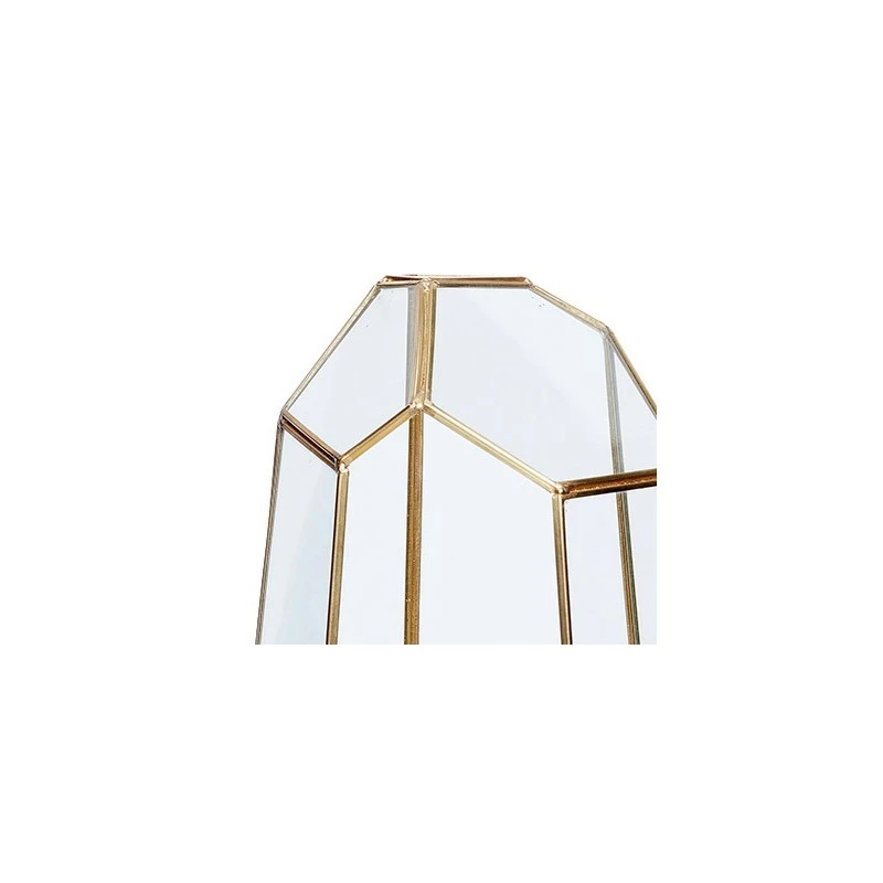 Medium geometric design terrarium made of brass and glass. It brings a Nordic and elegant touch while natural with this element as a terrarium in any corner of the house. You only need a small cactus or pot and some soil for plants.