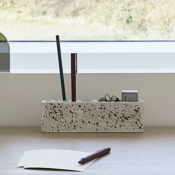 L’organisateur de bureau en béton terrazzo de chez Hubsch — Un bureau propre et élégant avec cet organisateur en béton terrazzo de la marque Hubsch . Placez-y vos stylos , ciseaux , calculatrice et autres accessoires utiles. L’avis de l’Atelier Kumo : Un organisateur parfait pour être créatif! Découvrez ici les autres accessoires de bureau! Dimensions: Longueur: 23 cm largeur: 5 hauteur: 6 cm Composition: Béton
