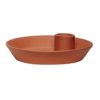 Candleholder in earth tone colors. Ideal for illuminating your terrace or garden on a summer evening. Its unique design allows to support the candle and leaves space for small objects or a decoration.