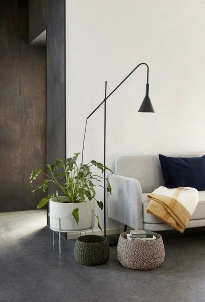 Rope Floor Lamp in Black by Hubsch, a minimal contemporary addition to any home.