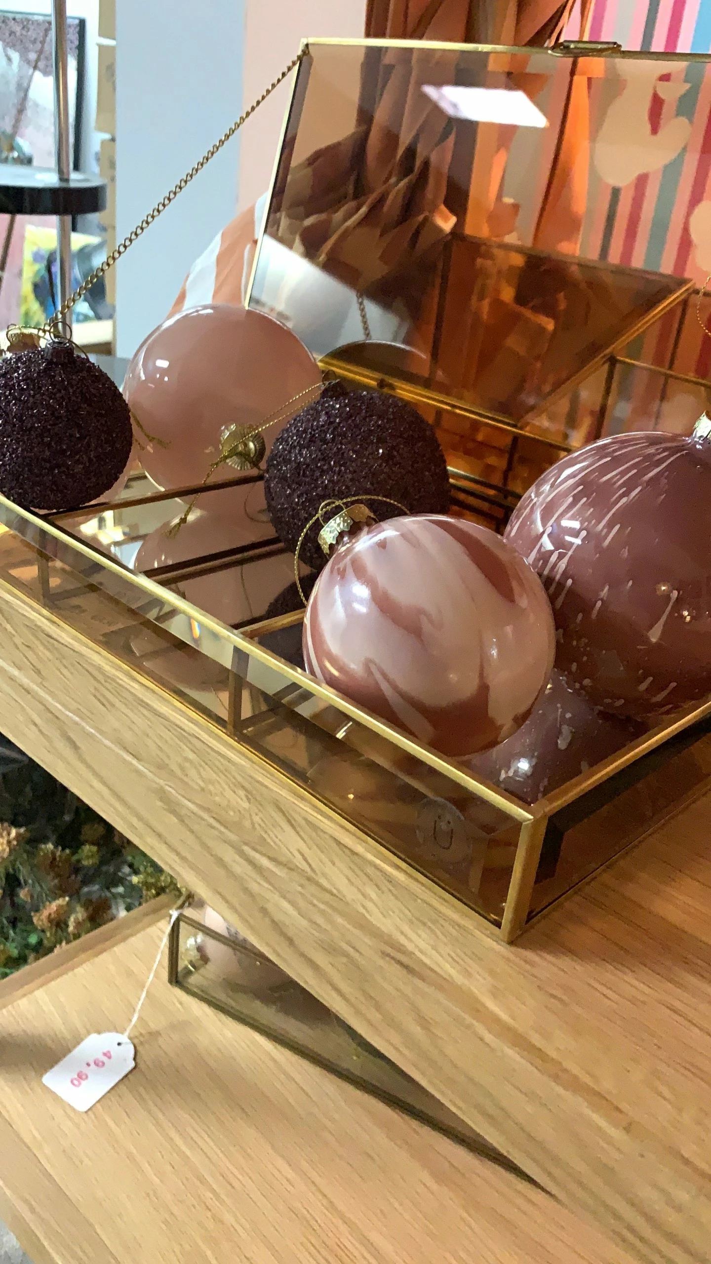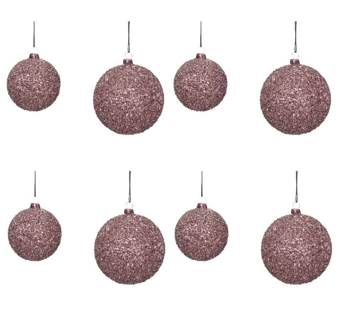 Wonderful set of eight hanging balls for Christmas tree decoration. The set consists of 8 balls of two different sizes, with a glossy textured finish and in a mix of pretty plum and purple tones. They are ideal to combine with balls of tones or textures, to create variety and make the Christmas tree something personal and unique.