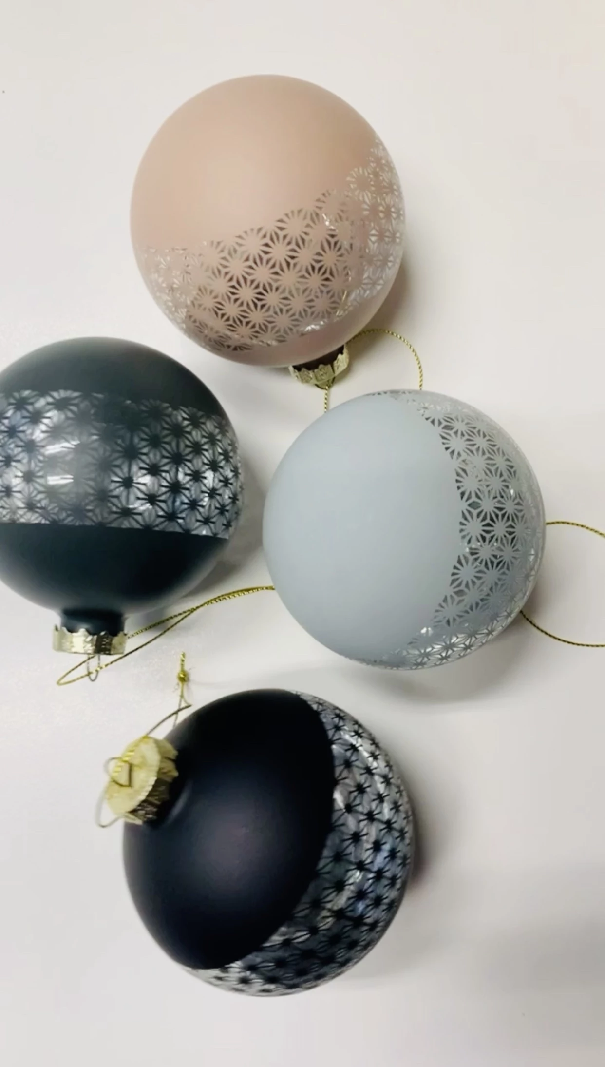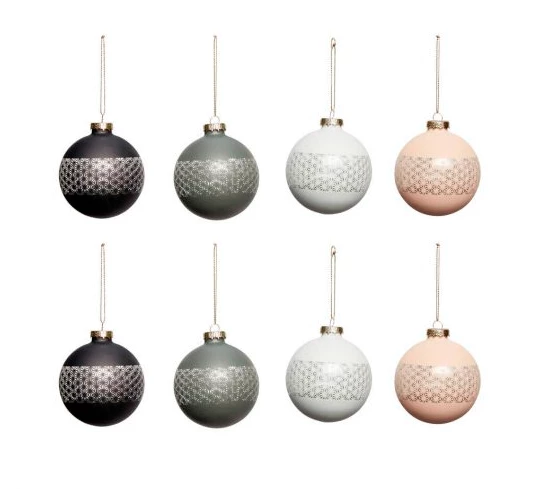 ¡¡Sure to bring a beautifully modern twist to your Christmas tree, Hubsch’s stylish set of 8 glass baubles comes in a muted palette of black, dark blue, light blue and pink. Accented with a transparent central strip patterned with pretty clusters, they gleam and glow in the light and catch candlelight beautifully. Mixed in with various other decorative baubles or strewn over your tree alone, they’ll lend a touch of luxury to the festive proceedings, year after year.