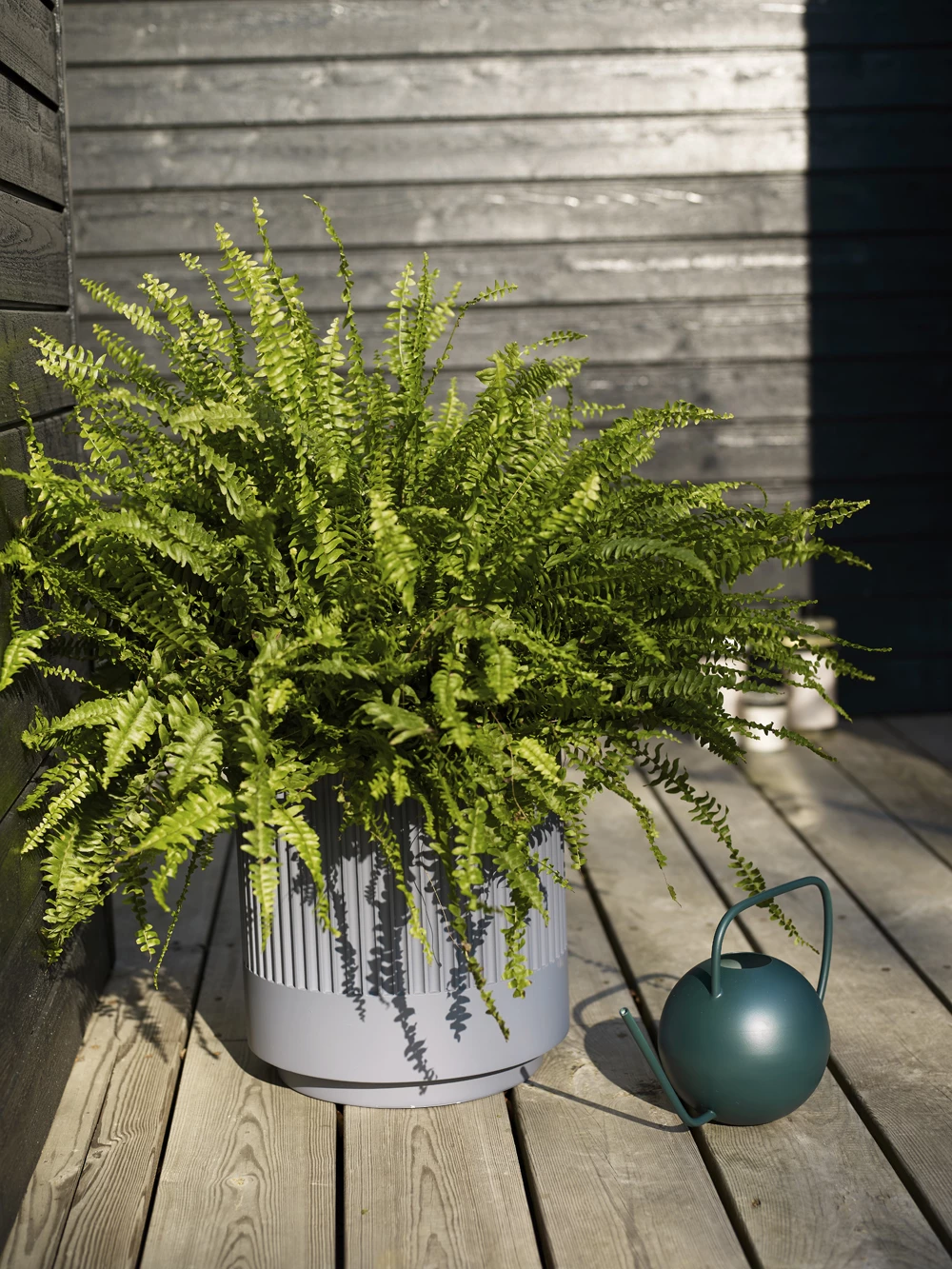 Very stylish indoor watering can that is perfect for watering houseplants, terrariums and topping up water for cut flowers. In a shade green metal, this lightweight and durable with contemporary design watering can is a beautiful object positioned on open shelving in a utility room, kitchen or conservatory.