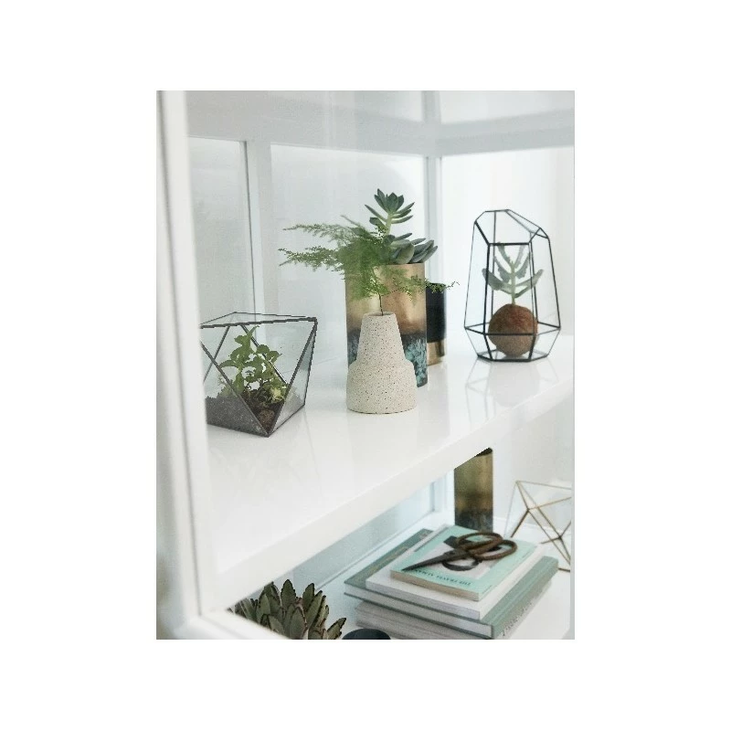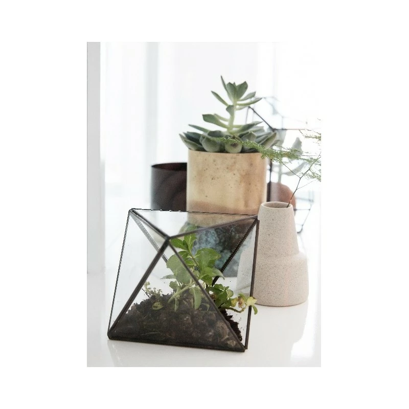 Our geometric terrarium made of glass and brass is ideal to complement any decoration and space with a touch of vegetation, whether natural or artificial. Suitable for centerpieces, window decoration, furniture, display cabinets, etc. It brings originality and elegance to any corner we want to highlight.