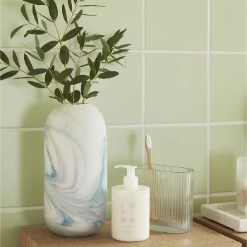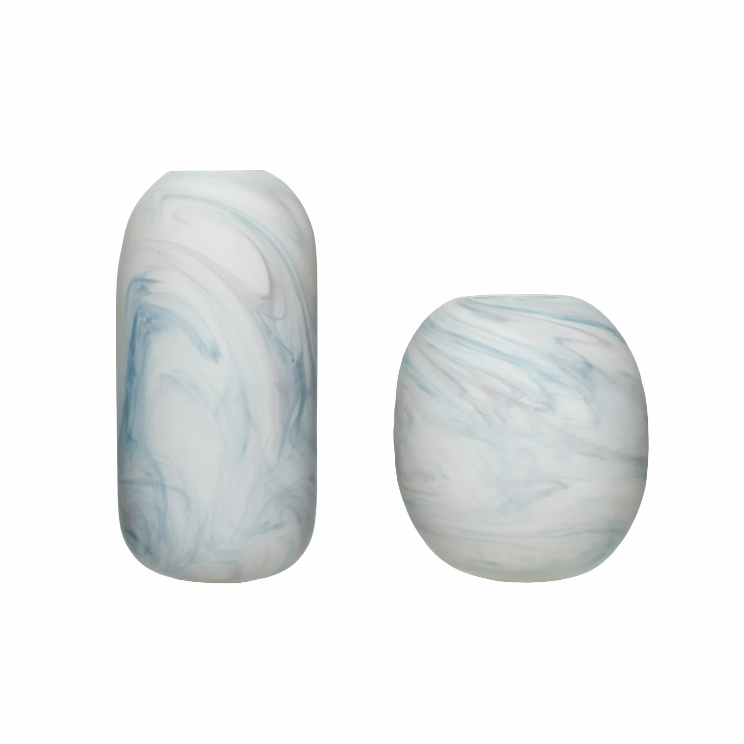 This beautiful White and Turquoise Teal frosted marble effect glass vase is perfect for displaying your seasonal blooms or simply styled alongside complementary glassware.