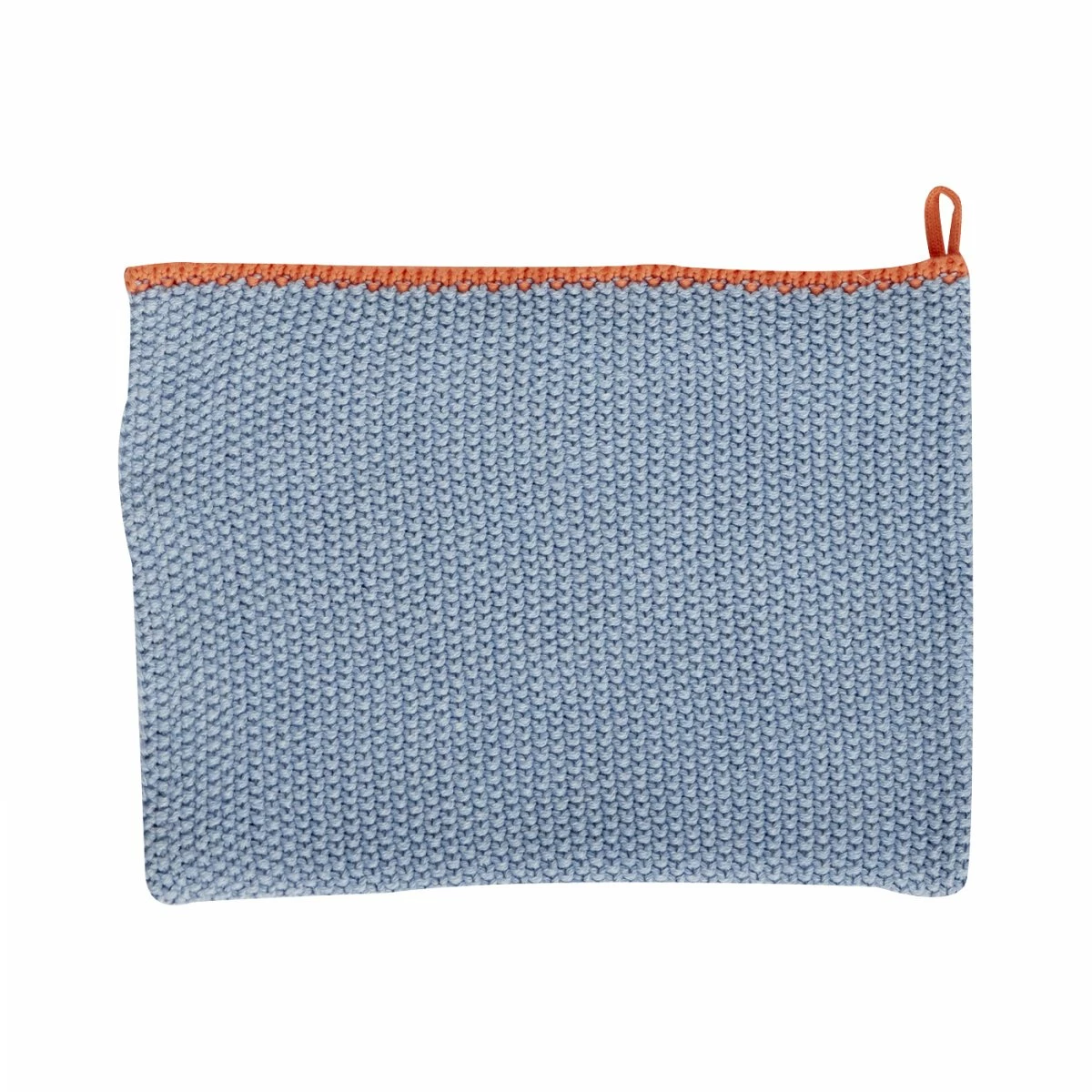The knitted towels made of 100% cotton can be used both in the kitchen and in the bathroom. They have a totally comfortable grip and can be hung anywhere with the small loop. The great color combination and the fine structure make it a real eye-catcher. Materials: Cotton Colors: Blue, Orange Size: 40 x 60 cm Machine wash 40 ° C