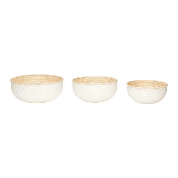 Natural hooped rattan with a whitewashed exterior, beautiful for displaying the seasons fruits & vegetables. ~ Size: small ø45 x h20 / medium ø52 x h23 / large ø60 x h25cm Material: rattan Care: handwash only