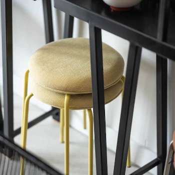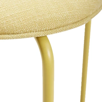 This small but mighty stacking stool is light, compact and beautiful. Don’t compromise on style or space, this stool is perfect for visitors and is a small space saviour. Made from a sturdy but lightweight iron and finished in a soft yellow colour, the legs are finished with a curve and have buffers on the bottom to protect your floor. The woven, textile is adds texture to your room and is cushioned for extra comfort. The matte, yellow legs have a modern feel that will fit in any home. Sit alone or stack with stools alike, 3 colours available.